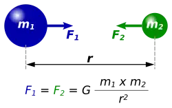 Die Gravitation (von lateinisch gravitas für „Schwere“),[1] auch Massenanziehung oder Gravitationskraft, ist eine der vier Grundkräfte der Physik. Sie äußert sich in der gegenseitigen Anziehung von Massen. Sie nimmt mit zunehmender Entfernung der Massen ab, besitzt aber unbegrenzte Reichweite. Im Gegensatz zu elektrischen oder magnetischen Kräften lässt sie sich nicht abschirmen.