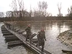 Ein Schützenschwimmsteg dient Soldaten zur Überwindung von Gewässern.