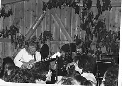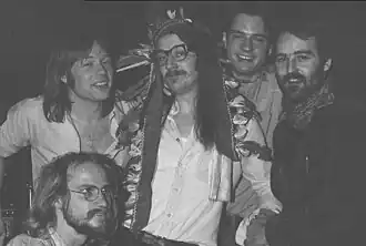 ![]() Schwoißfuaß in der Urbesetzung von 1979 (v. l. n. r.): „Didi“ Holzner (unten links), André Schnisa (oben links), „Sulla“ Bratke, „Riedel“ Diegel, „Alex“ Köberlein | |