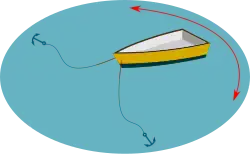 Ein Schiff vor Anker liegt nicht an einem bestimmten Punkt fest, sondern bewegt sich durch Änderungen der Wind- und/oder Strömungsrichtung innerhalb eines Kreisbogens um den Anker. Auch liegt ein Schiff nicht immer genau in Lee seines Ankers. Abhängig von seiner Rumpfform und sämtlichen Aufbauten kann es passieren, dass ein Schiff über einen weiten Bereich hin- und herschwingt: Sobald das Schiff nicht genau im Wind liegt, wird sein Bug nach Lee gedrückt und das Schiff liegt leicht schräg zum Wind. Damit wird das Schiff solange nach Lee gedrückt, bis der seitliche Zug der Ankerleine ausreicht, um den Bug auf die andere Seite hinüberzuziehen. Das Schiff beginnt Fahrt zur anderen Seite aufzunehmen, bis dort in ähnlicher Weise der andere Umkehrpunkt erreicht ist und das Spiel von Neuem beginnt. Dabei bewegt sich das Schiff auch bei konstanter Windrichtung nahezu auf einem Drittelkreis um den Anker.