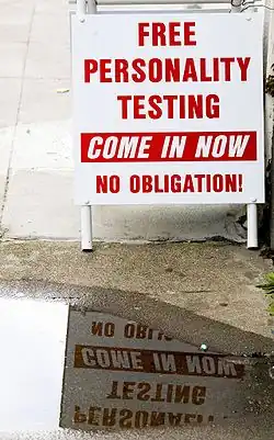 Eine sogenannte Oxford-Persönlichkeits-Analyse (englisch Oxford Capacity Analysis, OCA) wird als ein standardisierter vorgeblicher Persönlichkeitstest angewendet.[62] Der Test hat keine Verbindung zur Universität in Oxford, es besteht jedoch der Verdacht, dass der Name bewusst gewählt wurde, um eine solche Verbindung zu suggerieren.[63][64]