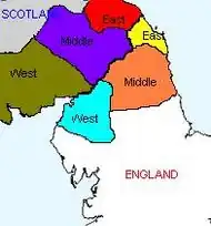 Auf beiden Seiten der Grenze gab es die Gebiete West March, Middle March und East March, die sich gegenseitig spiegelten, aber auch mit schottischen und englischen Regionen überlappten.