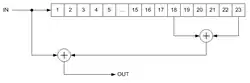 Die Struktur von Scrambler im Sender und Descrambler im Empfänger ist bei diesem Typ identisch.