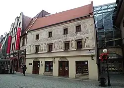 Das Renaissance-Bauwerk wurde 1599 vom Liegnitzer Schultheißen Hans Schulz (lateinisch Scultetus) erbaut. Die zweischichtige Dekoration in Sgraffitotechnik[1] an der Fassade stammt aus dem Jahr 1611 und zeigt geometrische und architektonische Elemente sowie Personifikationen der Sieben freien Künste: Grammatik, Dialektik, Rhetorik, Musik, Arithmetik, Astronomie und Geometrie.