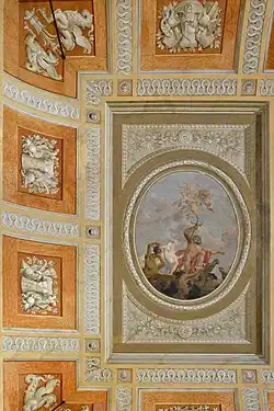Hinzu kamen Arbeiten in Venedig im Museo Correr (La gloria di Nettuno) und im Palazzo Barbarigo della Terrazza, wo er eine mythologische Bacchusszene (Merkur bringt Bacchus zu den Nymphen) anfertigte, und wohl auch Das Licht vertreibt die Finsternis oder Aurora.[2]