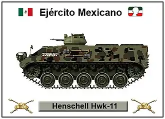 In den späten 1950er-Jahren entwickelte der westdeutsche Rüstungshersteller Henschel Wehrtechnik GmbH als private Initiative einen gepanzerten Truppentransporter auf Kettenfahrgestell mit dem Index HWK-10, der primär für den Export bestimmt war.[1] Der erste Prototyp mit der Bezeichnung HWK-11 wurde 1963 fertiggestellt und den Anforderungen des mexikanischen Verteidigungsministeriums (SEDENA) angepasst, das ein Interessent dieses Mannschaftstransportwagens war. 1964/1965 wurden schließlich 40 Fahrzeuge an die mexikanische Armee geliefert, die in den folgenden Jahrzehnten mehrmals modernisiert wurden.[2]