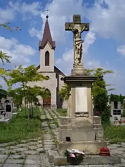 • Dorfglocke und Kreuz auf dem Dorfplatz