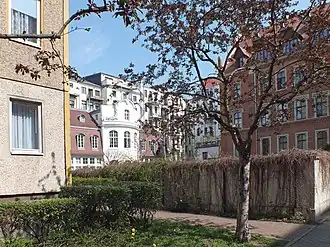 Nach Schäden im Zweiten Weltkrieg und Abriss danach vernachlässigter, maroder historischer Bauten dominieren im südlichen Teil des Viertels ab 1987 errichtete WBS 70-Plattenbauten das Stadtbild.