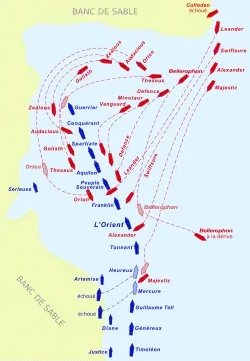 Seit der zweiten Hälfte des 17. Jahrhunderts wurden Marineoffiziere – zuerst in England – professionell ausgebildet; es wurde eine strikte Disziplin durchgesetzt. Die unter Oliver Cromwell 1651 beschlossene Navigation Acts drückten das Streben nach Dominanz über die weltweiten Seehandelsrouten aus; sie standardisierten auch den Bau von Kriegsschiffen. Linienschiffe der 1. Klasse trugen bis zu 100 Kanonen. Langfristig errang damit die Royal Navy in der Seekriegsführung ein strategisches Übergewicht gegenüber anderen europäischen Nationen. Im 17. und 18. Jahrhundert fanden allein vier Seekriege zwischen England und den Niederlanden um die Vorherrschaft auf den Weltmeeren statt, die hauptsächlich auf der Nordsee, aber auch in der Karibik, vor Westafrika und in Südostasien ausgetragen wurden.[12] Nachdem die vom wirtschaftlichen Abstieg bedrohten Niederlande kein ernsthafter Gegner für die Royal Navy mehr waren, gipfelte deren Vorherrschaft im Zeitalter der Segelschiffe in den Siegen Horatio Nelsons auch über die französische Flotte.[13]