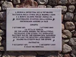 Venezianische Inschrift in Nafpaktos aus dem Jahr 2000 zur Erinnerung an die Seeschlacht von 1571