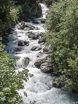 ![]() Die Sefinen Lütschine unterhalb des Sefinenfalls kurz vor der Mündung in die Weisse Lütschine | ||||||