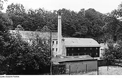 Das Mühlengebäude wurde im Jahre 1716 als Mahl-, Öl- und Brettmühle mit 3 Gängen beschrieben. Der Hofkomplex bestand aus dem Auszugshaus neben der Mühle, dem Wirtschaftsgebäude, der Scheune mit gewölbten Stall und dem Wohnhaus.[3] Das große Mühlengebäude bestand parallel der Möbelfabrik am Mühlgraben direkt an dem noch bestehenden großen Schornstein und ist wie die meisten Hofgebäude abgetragen.