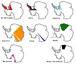 Ab 1908 begannen mehrere Staaten Gebietsansprüche für Teile des Kontinents Antarktika zu formulieren. Diese nationalen Forderungen (mit Ausnahme der von Norwegen beanspruchten Peter-I.-Insel) sind mehrere Kreis-Sektoren, also „Tortenstücke“, deren Anzahl mit der Anzahl der Anspruchsteller variiert. In der Literatur sind Begriffe wie „Kuchenstücke“ u. Ä. zu finden (englisch pie slices, pie pieces oder pie-shaped sectors bounded by meridians). Wobei das Australische Antarktis-Territorium aus zwei durch das französisch beanspruchte Adélieland getrennten Sektoren besteht. Die britischen, chilenischen und argentinischen Sektoren überlappen sich weitgehend.