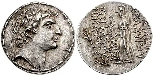 Es wurden Silbertetradrachmen von Seleukos VI. gefunden, die sein realistisches Porträt auf der Vorderseite zeigen und die Inschrift Basileos Seleukou Epiphanous Nikatoros („von König Seleukos, dem erschienenen siegreichen Gott“) tragen. Außerdem sind zwei sich auf Seleukos VI. beziehende Inschriften bekannt.[3]
