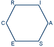 John L. Holland hat in einem Hexagon-Modell die Beziehung zwischen diese Persönlichkeitstypen dargestellt. Diejenigen Typen, die nahe beieinander liegen, weisen mehr Gemeinsamkeiten miteinander auf, wobei weiter entfernte Orientierungen stärker voneinander abweichen.[2]