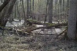 Das Gangelter Bruch war vor Melioration ein typischer atlantisch ausgeprägter Moor- und Bruchwald. Südlich des Rodebaches finden sich umfangreiche Flugsandauflagerungen mit recht armen Podsolböden und vereinzelten (früheren) Binnendünen. Der Flugsand der Teverener Heide stammt aus dem nahegelegenen Maastal. Er war ursprünglich Standort eines Eichen-Birkenwaldes, dann aufgrund menschlicher Nutzung degradiert zu einer atlantischen Zwergstrauchheide, die um die Mitte des 20. Jahrhunderts weitgehend einer Aufforstung mit Kiefern und dem Bau des militärischen Flughafens Teveren weichen musste.