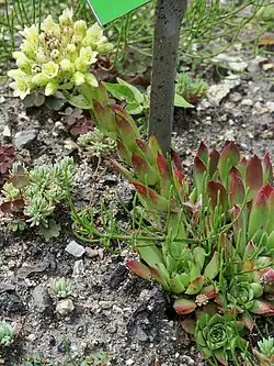 Sempervivum heuffelii 'Aiolos', mit Knospen am Blütenstand, -