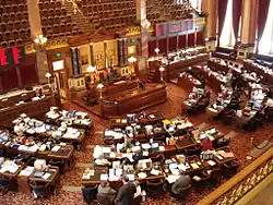 Der Sitzungssaal des Senats befindet sich gemeinsam mit dem Repräsentantenhaus im Iowa State Capitol in der Hauptstadt Des Moines.