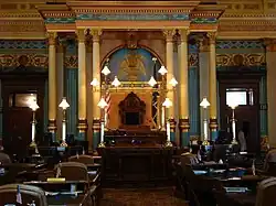 Der Sitzungssaal des Senats befindet sich gemeinsam mit dem Repräsentantenhaus im Michigan State Capitol in der Hauptstadt Lansing.