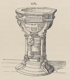 - ↑ Auch in Westkirchen musste man das Gotteshaus nach einem Dorfbrand im Jahr 1868 neu aufbauen, so dass dort Bedarf nach einem Taufstein bestand, siehe Flaskamp S. 220.