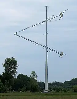 - Vier Rhombusantennen für Richtstrahlung nach 56°, 90°, 123°, 175°, 236°, 270° und 303°