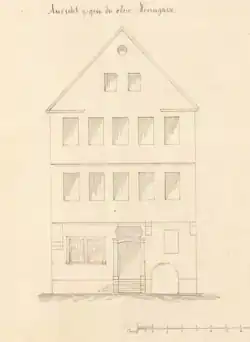 Ein Kellervorbau rechts neben dem Eingang wurde im Jahr 1874 abgebrochen. Im Zuge dieser Umgestaltung wurde auch die Treppe verkürzt und die Raumeinteilung im Erdgeschoss verändert. Rechts des Eingangs wurde ein Ladenraum eingerichtet, im hinteren Bereich eine Wurstküche. Im Hinterhof wurde außerdem ein Viehstall gebaut.
