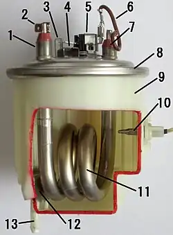 Um sicherzustellen, dass der Boiler in der Maschine immer mit Wasser gefüllt ist, befindet sich ein Schwimmer in dem abnehmbaren Wassertank, der eine Messung des Mindestfüllstandes erlaubt. Ist der Mindestfüllstand unterschritten, wird der Erhitzer von der Elektronik im Fuß der Maschine ausgeschaltet und die Einschalt-LED blinkt schnell. So wird sichergestellt, dass der Rohrheizkörper des Boilers nicht überhitzt. Bei der Erstbenutzung oder entleerter Maschine ist zum Füllen des Boilers daher eine besondere Füllprozedur durchzuführen.[3] Das Verhindern von Luftkontakt mit dem Rohrheizkörper verringert außerdem Kalkablagerungen. Bei genügendem Wasserstand wird direkt nach der Beendigung des Brüh- und Füllvorganges die nächste Portion Wasser aufgeheizt, was durch langsames Blinken der Einschalt-LED signalisiert wird.