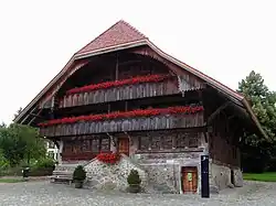 - ↑ Jean-Pierre Anderegg: Die Bauernhäuser des Kantons Freiburg – La maison paysanne fribourgeoise. Band 1: Die Bezirke Saane, See, Sense. Tome 1: Les districts du Lac, de la Sarine et de la Singine (= Schweizerische Gesellschaft für Volkskunde – Société suisse des traditions populaires [Hrsg.]: Die Bauernhäuser der Schweiz – La maison paysanne suisse. Band 7). G. Krebs AG, Basel 1979, S. 209 (Abb. 537).