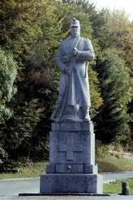 In der Nacht vom 31. Mai auf den 1. Juni 1984 wurde das Denkmal vom Sockel gestürzt. Mehrere Aktivisten der Béliers sassen anschliessend wegen dringenden Tatverdachts drei Tage lang in Untersuchungshaft, doch die Polizei konnte ihnen nichts nachweisen, und das Verfahren musste 1987 eingestellt werden.[11] Eine Woche nach der Tat forderten die Béliers in einer Erklärung, anstelle der Statue solle ein Denkmal errichtet werden, das an den Sieg der Separatisten im ersten Juraplebiszit vom 23. Juni 1974 erinnert. Am 27. Juni 1984 stand das Denkmal wieder auf seinem Sockel.[5] Am 10. August 1989 ereignete sich ein weiterer Sockelsturz; zusätzlich wurde der Kopf der Statue gestohlen und der Sockel mit dem Slogan DMF tue («[das] EMD tötet») sowie einem Hakenkreuz verschmiert.[12] Die Überreste lagerte man daraufhin in einem Depot des kantonalen Strassenverkehrsamtes in Glovelier, das jedoch in der Nacht vom 24. auf den 25. Januar 1990 als Folge eines Brandanschlags niederbrannte.[5]