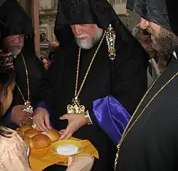 Erzbischof Sepuh Sargsjan (Mitte) vor der St.-Sarkis-Kathedrale in Teheran am Völkermord-Gedenktag, 24. April 2017