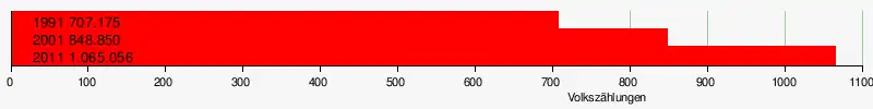 | Einwohner | 190.062 | 212.210 | 224.453 | 274.259 | 327.053 | 355.319 | 413.188 | 493.874 | 560.359 | 707.175 |