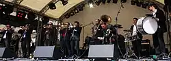 Die Bezahlung der Musiker erfolgt dabei meist unmittelbar durch Ankleben von Geldscheinen an die Stirn der Musiker oder Hineinwerfen in die Instrumente.[2] Das größte Festival der Serbischen Brass-Musik ist das Trompetenfestival im zentralserbischen Guča, eines der größten Volksmusikfestivals der Welt mit bis zu 500.000 Besuchern. International wurde die serbische Brass-Musik besonders durch die Filme Emir Kusturicas mit Soundtracks von Goran Bregović und Boban Marković populär. Daneben sorgten DJs wie Shantel und Weltmusik-Labels wie Piranha Records für ihre Verbreitung.