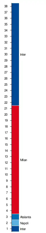 Nachdem die AC Mailand, die in der Saison 2010/11 zuletzt Meister wurde, zunächst vom 4. bis zum 21. Spieltag die Tabellenspitze belegte, wurde das Team im Anschluss vom Stadtrivalen Inter abgelöst. Bereits vier Spieltage vor Saisonende konnten sich die Nerazzurri, die sogar noch ein Jahr länger hatten warten müssen als Milan, ihre insgesamt 19. Landesmeisterschaft sichern, nachdem Atalanta Bergamo als letzter Verfolger nur zu einem Remis gegen Sassuolo kam. Zu diesem Zeitpunkt war es noch allen Mannschaften auf den Rängen 2 bis 7 möglich, die Qualifikation zu allen europäischen Wettbewerbe von der Conference bis zur Champions League zu erreichen. Vor dem letzten Spieltag stand Lazio Rom als Teilnehmer an der Europa League fest, für die restlichen drei Champions-League-Plätze gab es noch vier Kandidaten. Das Rennen machten letztendlich Milan, Atalanta sowie Juventus; da Napoli nur remis gegen Hellas spielte, verpasste das Team von Gennaro Gattuso – der daraufhin den Verein verließ – den Einzug in die Königsklasse.