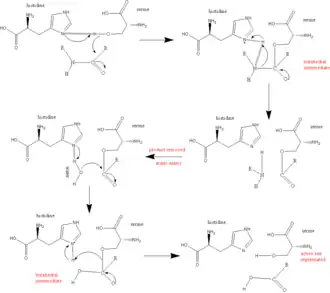 Die Einteilung in diese Gruppe bezieht sich auf das aktive Zentrum der Peptidasen. Wie alle Enzyme haben auch Serinproteasen eine ganz bestimmte Struktur im aktiven Zentrum, hier die katalytische Triade. Bei den Serinproteasen findet sich dort die Aminosäure Serin.