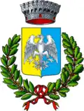Auf einem in blau und gelb geteilten Schild ein silberner Adler. Die Farben blau und gelb, sowie der Adler leiten sich vom Familienwappen der lange den Ort beherrschenden Caetani her.[10]