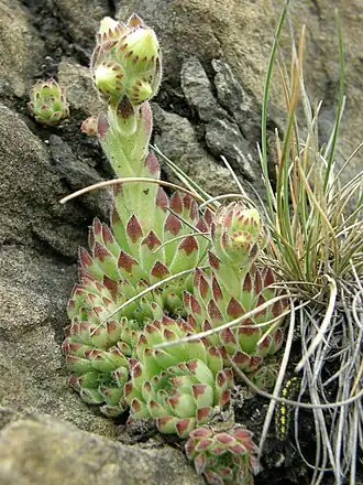 - ↑ a b c Michael Koltzenburg: Sempervivum. In: Schmeil-Fitschen: Die Flora Deutschlands und angrenzender Länder. 98. Auflage. Verlag Quelle & Meyer, Wiebelsheim 2024. ISBN 978-3-494-01943-7. S. 364.