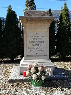 - Gedenkstein an den 29. Oktober 1918, als Österreich-Ungarn im Ersten Weltkrieg Italien um die Aufnahme von Waffenstillstandsverhandlungen bat. Am nördlichen Ortseingang direkt am Straßenrand der SS 12 und der angrenzenden Brennerbahn gelegen.