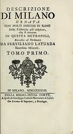 - ↑ Mauro Colombo: La Descrizione di Milano di Serviliano Latuada. Abgerufen am 21. November 2023 (italienisch).