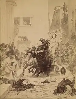 Im 44. Regierungsjahr soll er gestürzt und auf der Flucht nach Hause ermordet worden sein. Dies soll seine Tochter Tullia die Jüngere, die um jeden Preis ihren Ehemann Lucius Tarquinius Superbus auf den Thron bringen wollte, angestiftet haben. Servius Tullius’ Leichnam wurde angeblich sogar vom Wagen seiner Tochter überrollt, was in der späteren römischen Tradition als ein exemplum für ein Vergehen gegen den Vater galt.[8]