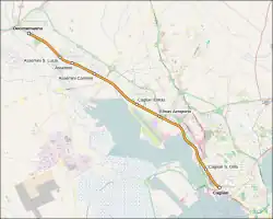 Am 9. Juni 2013 wurde der Flughafenbahnhof Elmas Aeroporto eröffnet. Gleichzeitig wurden die Haltepunkte Assemini Carmine und Assemini Santa Lucia geschlossen.[5] Sie werden wieder angefahren, es besteht ein Stundentakt mit Abweichungen im Jahr 2016.