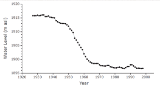 | Veränderung des Wasserstandes des Sewansees im 20. Jahrhundert | ||
