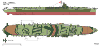 Während der größte dieser Flugzeugtypen, der B5N2 Torpedobomber, mit 15,51 Metern Spannweite im Hangar durch Hochklappen der Tragflächen auf nur noch 7,5 Meter Breite verkürzt werden konnte, konnten bei den Flügeln der kleineren D3A1 Sturzkampfflugzeuge und der A6M2 Jagdmaschinen nur die Flügelspitzen umgeklappt werden, so dass sie in den Hangars noch immer knapp 10 Meter breit waren.[3]