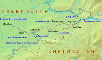 | Mittelstädte | Kara-Suu (Kirgisistan) Qorasuv, Qoʻrgʻontepa, Xoʻjaobod, Asaka, Shahrixon (Usbekistan) | |