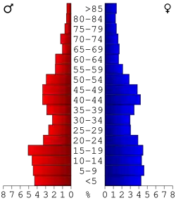 33,0 Prozent der Bevölkerung war unter 18 Jahre alt, 10,4 Prozent zwischen 18 und 24, 24,8 Prozent zwischen 25 und 44, 20,4 Prozent zwischen 45 und 64 Jahre alt und 11,3 Prozent waren 65 Jahre oder älter. Das Durchschnittsalter betrug 31 Jahre. Auf 100 weibliche kamen statistisch 88,7 männliche Personen und auf 100 Frauen im Alter von 18 Jahren oder darüber kamen 82,4 Männer.