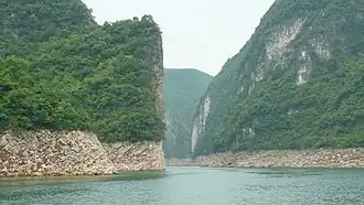 Durch die Aufstauung des Jangtse im Zuge des Drei-Schluchten-Damms ist der Wasserstand des Flusses erheblich angestiegen, weshalb Siedlungen der Tujia in höher gelegene Gebiete verlagert wurden. Damit entfällt auch die – in den letzten Jahren auch touristisch relevante – Tradition des Treidelns in höher gelegenen Gebieten des Flusses.