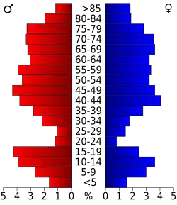Auf das gesamte County bezogen setzte sich die Bevölkerung zusammen aus 21,4 Prozent Einwohnern unter 18 Jahren, 3,8 Prozent zwischen 18 und 24 Jahren, 19,9 Prozent zwischen 25 und 44 Jahren, 28,3 Prozent zwischen 45 und 64 Jahren und 26,6 Prozent waren 65 Jahre alt oder darüber. Das Durchschnittsalter betrug 48 Jahre. Auf 100 weibliche Personen kamen 105,8 männliche Personen. Auf 100 Frauen im Alter von 18 Jahren oder darüber kamen statistisch 104,3 Männer.