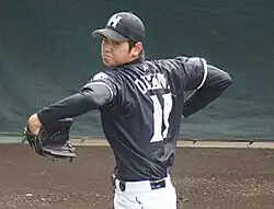 Ohtani ist 1,93 Meter groß und 92 Kilogramm schwer.[76] Er wirft mit der rechten Hand und wird hauptsächlich als Starting Pitcher eingesetzt, spielt also in der Regel ab dem ersten Inning. Er wirft mit einer Überhand-Technik, mit der er folgende Durchschnitts- und Höchstgeschwindigkeiten erzielt: