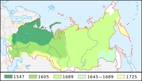 Im Uralgebirge hatte es schon seit dem 11. Jahrhundert Handels- und Bergbauniederlassungen der Republik Nowgorod gegeben. Östlich des russischen Siedlungsgebietes bis in den Ural gab es später das halbautonome Herrschaftsgebiet der Kaufmannsfamilie Stroganow. Es bildete die Ausgangsbasis für die Eroberung und Erschließung Sibiriens. Die begann um 1580 mit der Expedition des Kosaken Jermak. 1582 eroberten die Kosaken das Khanat Sibir, das bis dahin Westsibirien vom Uralgebirge bis zum Jenissei beherrscht hatte.