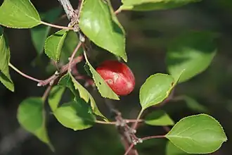 Frucht und Laubblätter einer Sibirischen Aprikose | ||||||||||||