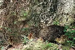 - ↑ Schroeder, M. A., E. J. Blomberg, D. A. Boag, P. Pyle, and M. A. Patten (2021). Spruce Grouse (Canachites canadensis), version 1.1. In Birds of the World (P. G. Rodewald, Hrsg.). Cornell Lab of Ornithology, Ithaca, NY, USA. doi: 10.2173/bow.sprgro.01.1